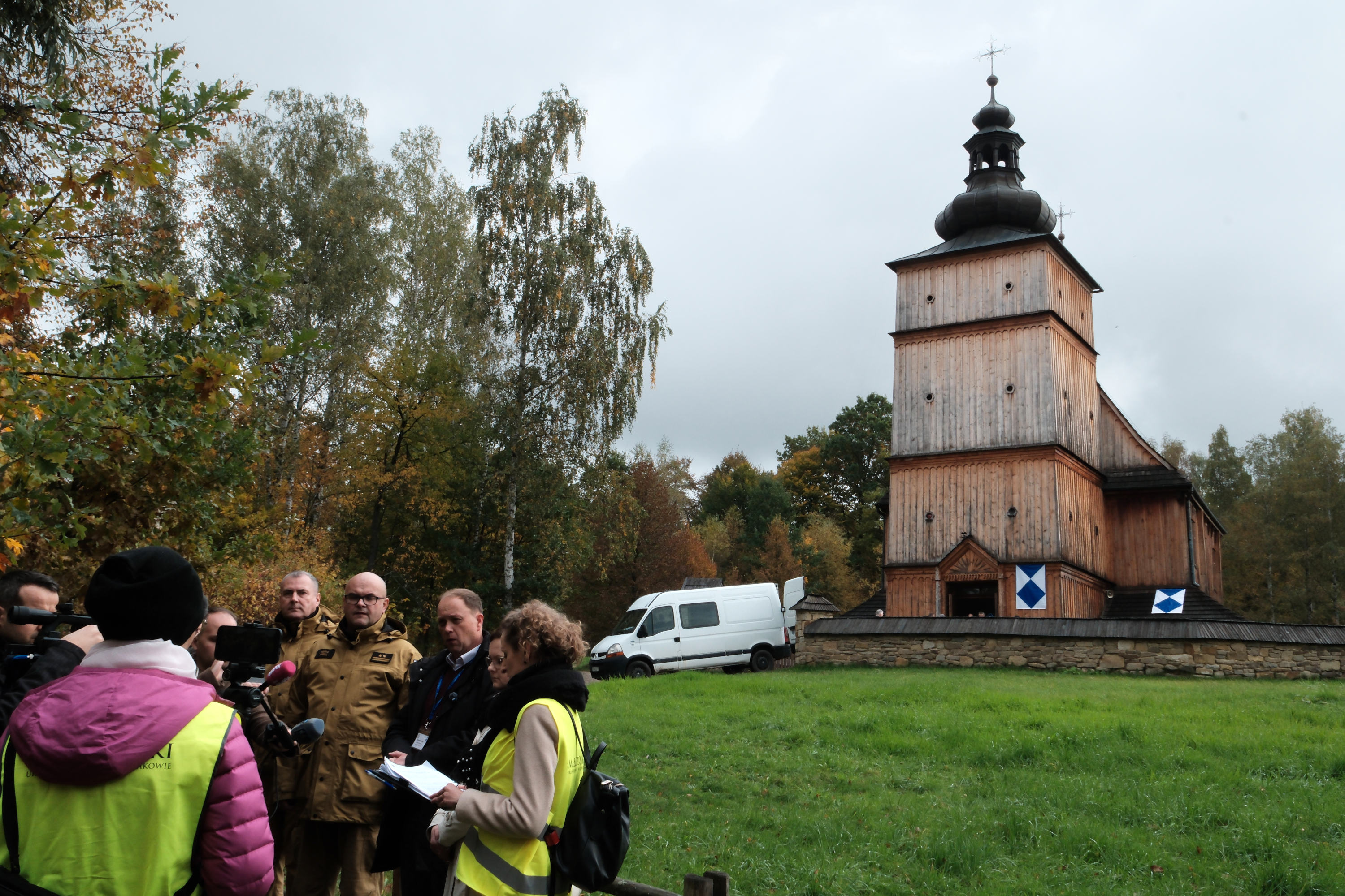 Co by było, gdyby tak cenny obiekt był zagrożony? Jakie czynności należałoby wykonać i kto byłby w nie zaangażowany? Te bardzo ważne kwestie na spotkaniu z mediami omówili: dyrektor Muzeum Ziemi Sądeckiej dr Robert Ślusarek wraz ze swoim zastępcą Sławomirem Czopem, p.o. kierownik delegatury Wojewódzkiego Urzędu Ochrony Zabytków w Nowym Sączu Patrycja Czyżycka, zastępca komendanta miejskiego Państwowej Straży Pożarnej w Nowym Sączu bryg. Konrad Gurgul oraz naczelnik Wydziału Operacyjno-Szkoleniowego KM PSP w Nowym Sączu bryg. Piotr Wysowski.