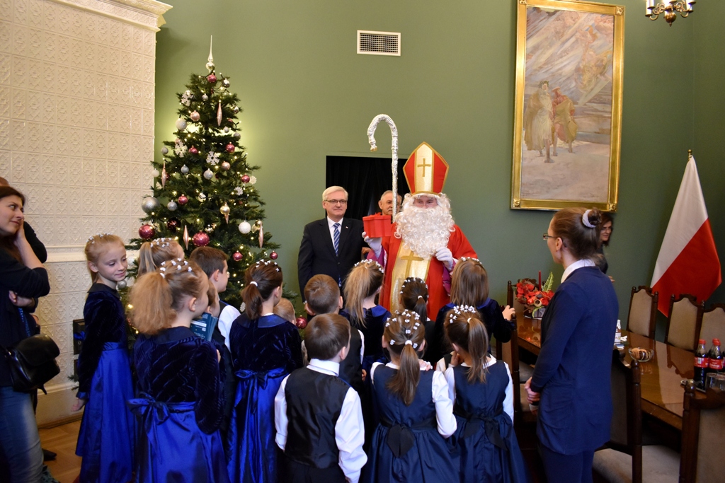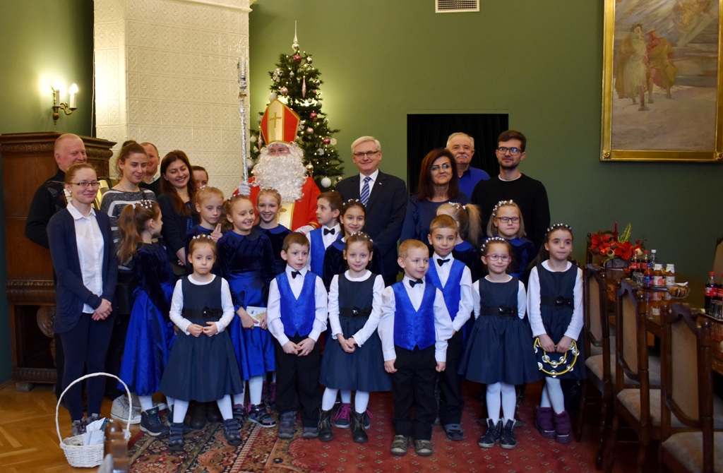 Dziś odwiedziły nas dzieci z Ośrodka Opiekuńczo-Wychowawczego w Żmiącej. Małych kolędników przywitali wojewoda Piotr Ćwik oraz wicewojewoda Józef Gawron. Na dzieci – oprócz życzeń gospodarzy, słodyczy i upominków – czekał także… święty Mikołaj.