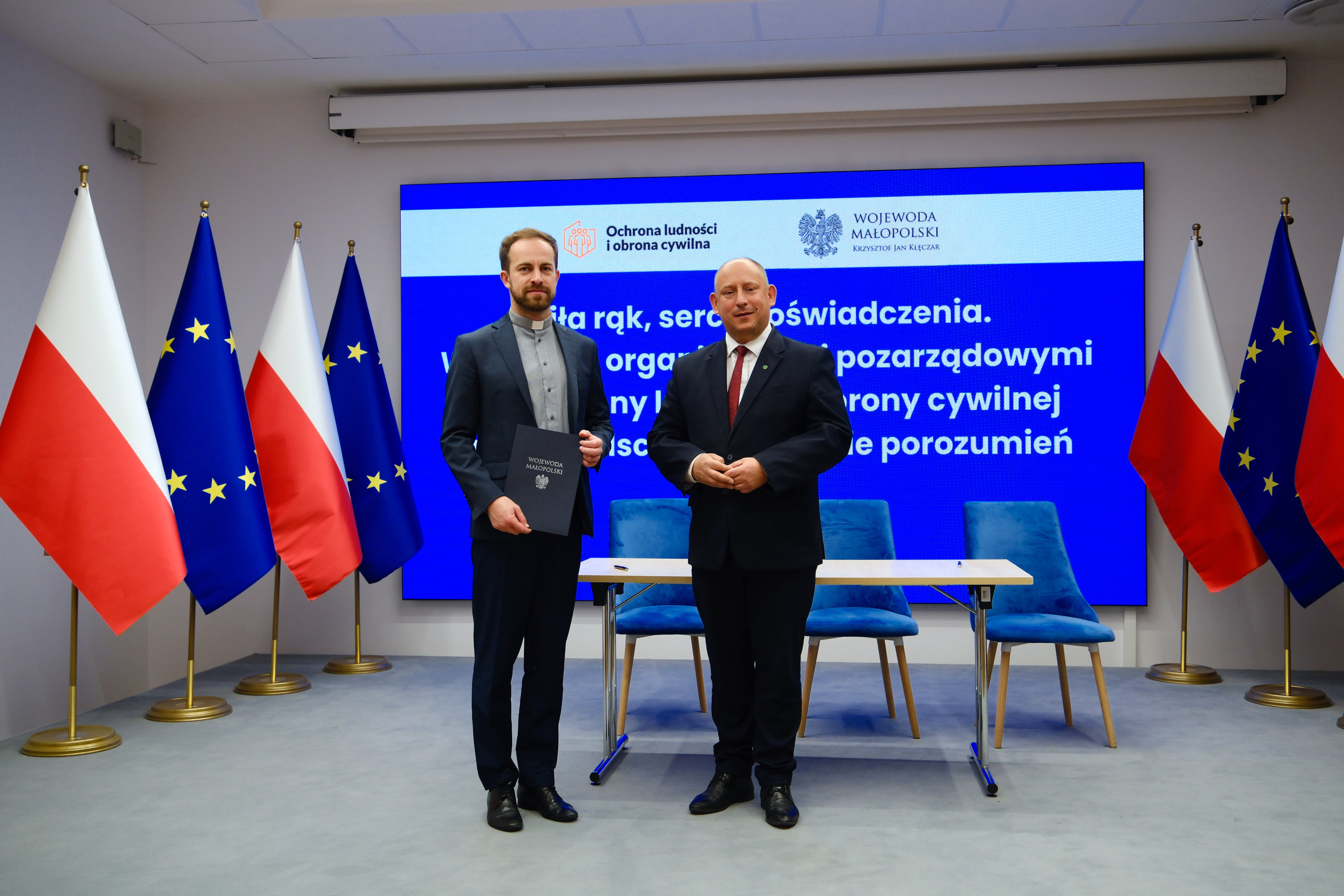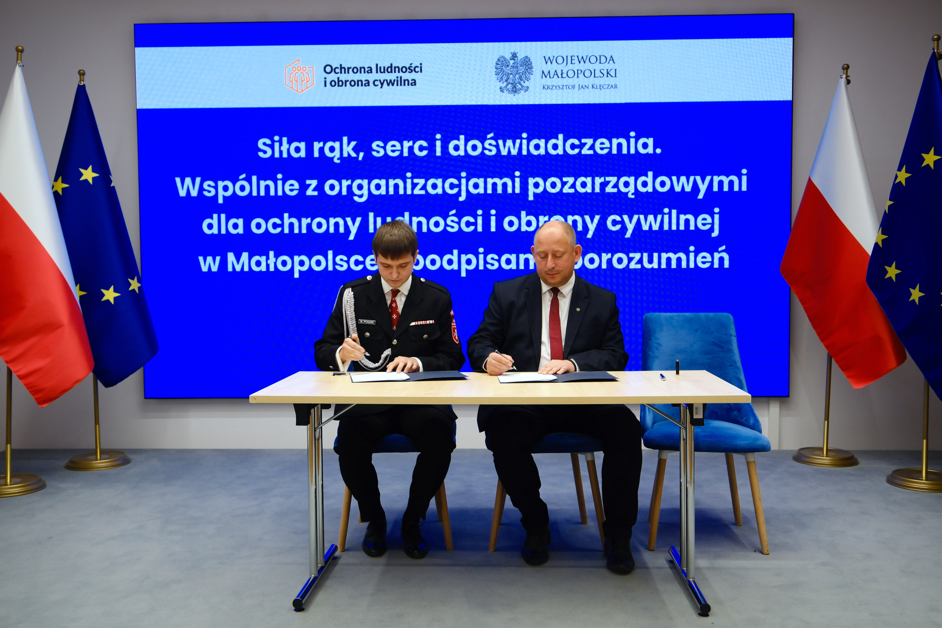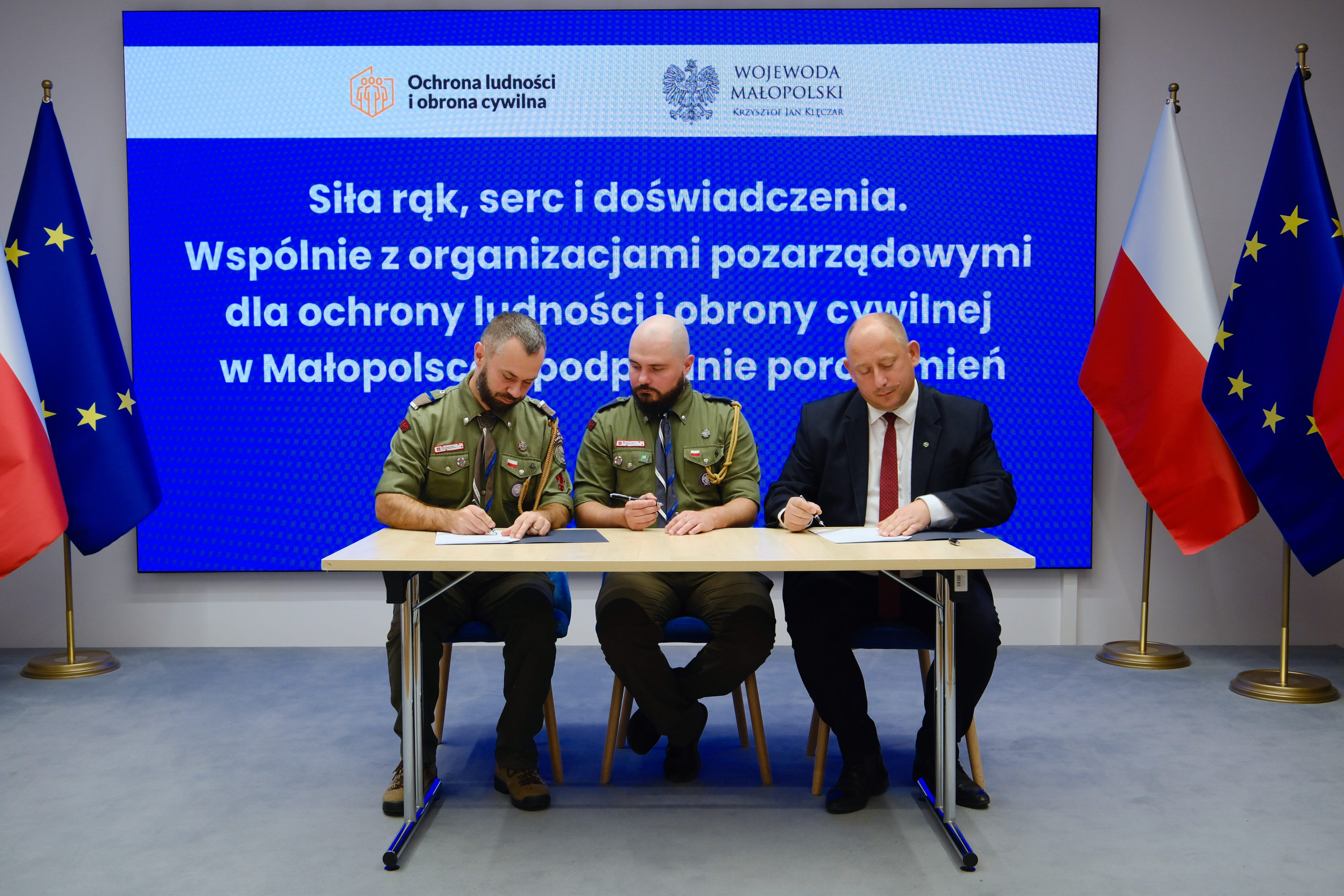 Dzisiaj w Małopolskim Urzędzie Wojewódzkim w Krakowie wojewoda małopolski Krzysztof Jan Klęczar podpisał porozumienia o wykonywaniu zadań z zakresu ochrony ludności i obrony cywilnej z organizacjami pozarządowymi.