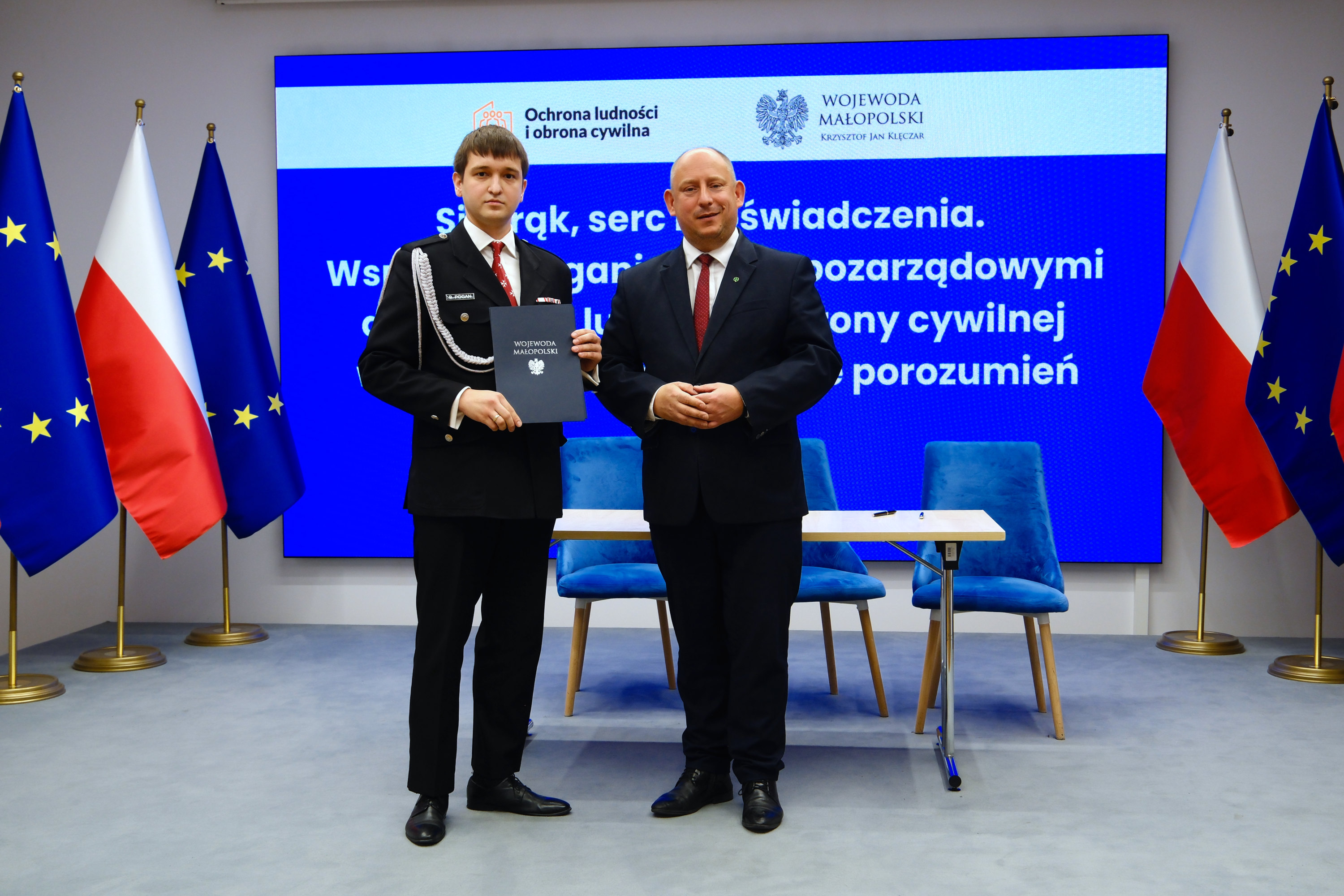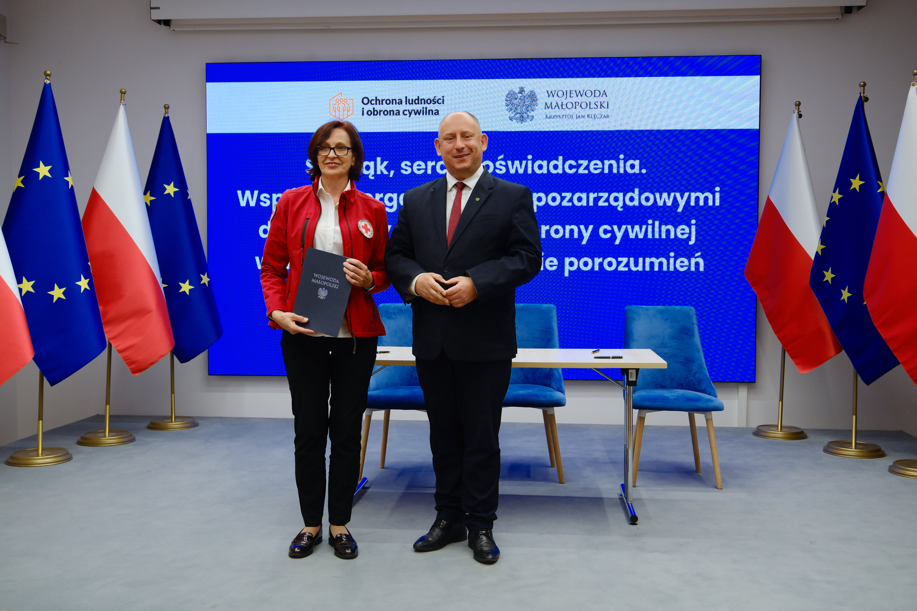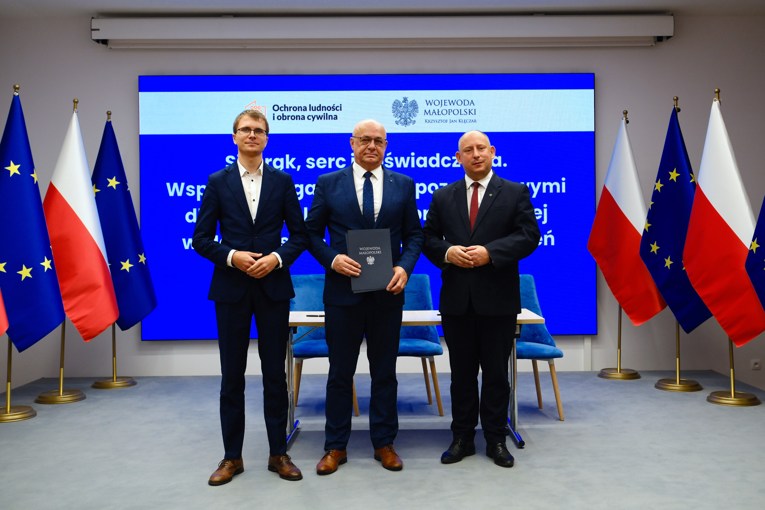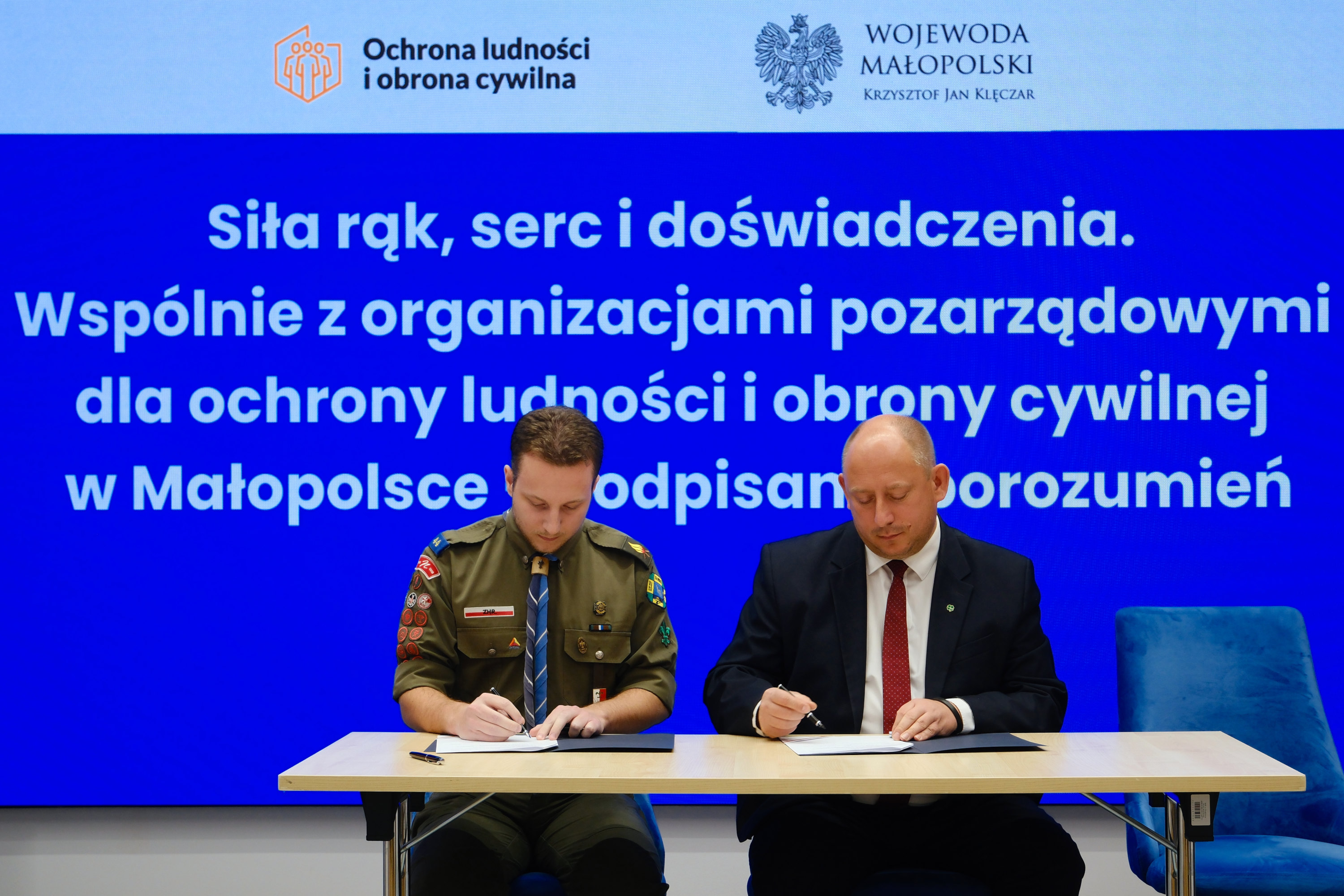 Dzisiaj w Małopolskim Urzędzie Wojewódzkim w Krakowie wojewoda małopolski Krzysztof Jan Klęczar podpisał porozumienia o wykonywaniu zadań z zakresu ochrony ludności i obrony cywilnej z organizacjami pozarządowymi.
