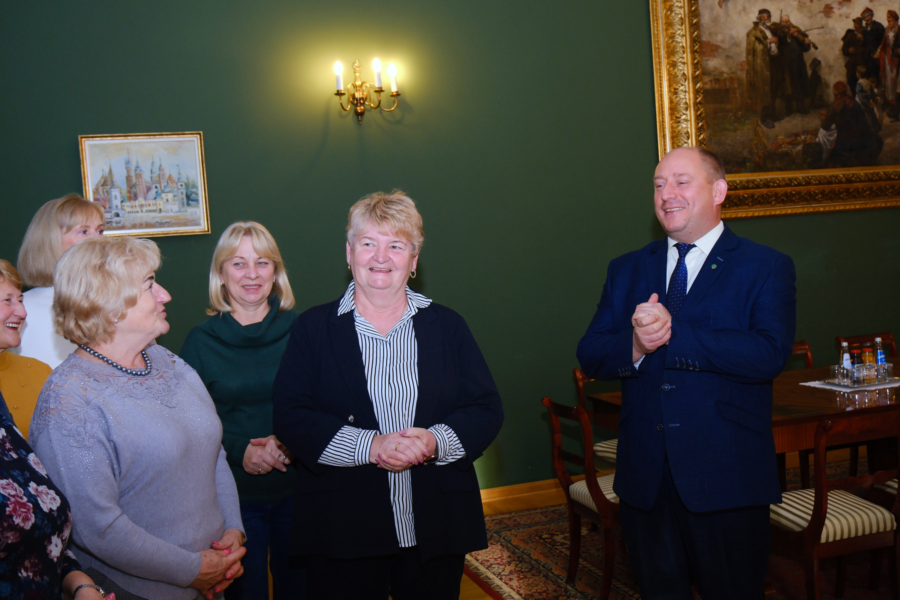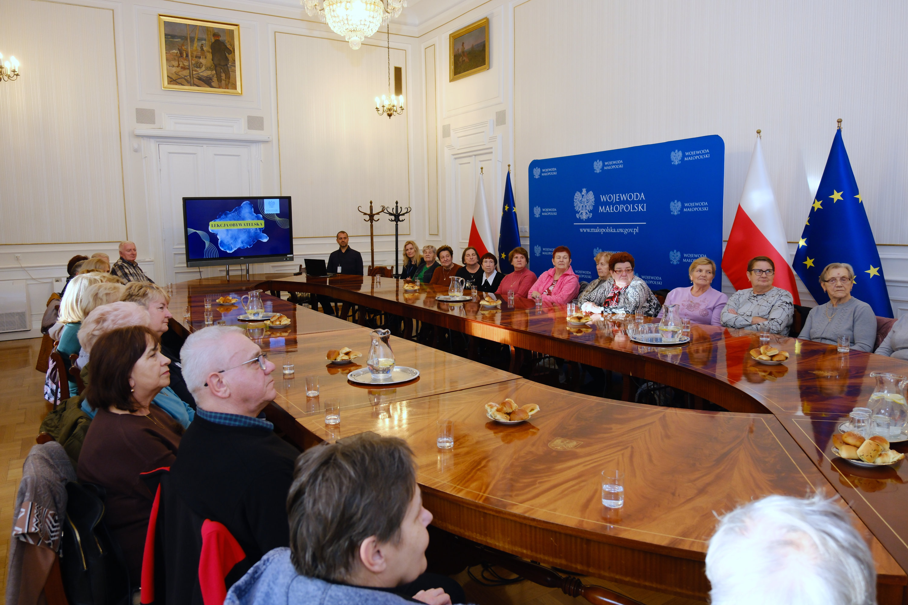 Grupa 32 seniorów z gminy Borzęcin spotkała się dziś z wojewodą małopolskim Krzysztofem Janem Klęczarem i I wicewojewodą Elżbietą Achinger. Podczas spotkania rozmawiano m.in. o zadaniach wojewody oraz o różnicach między administracją rządową i samorządową.