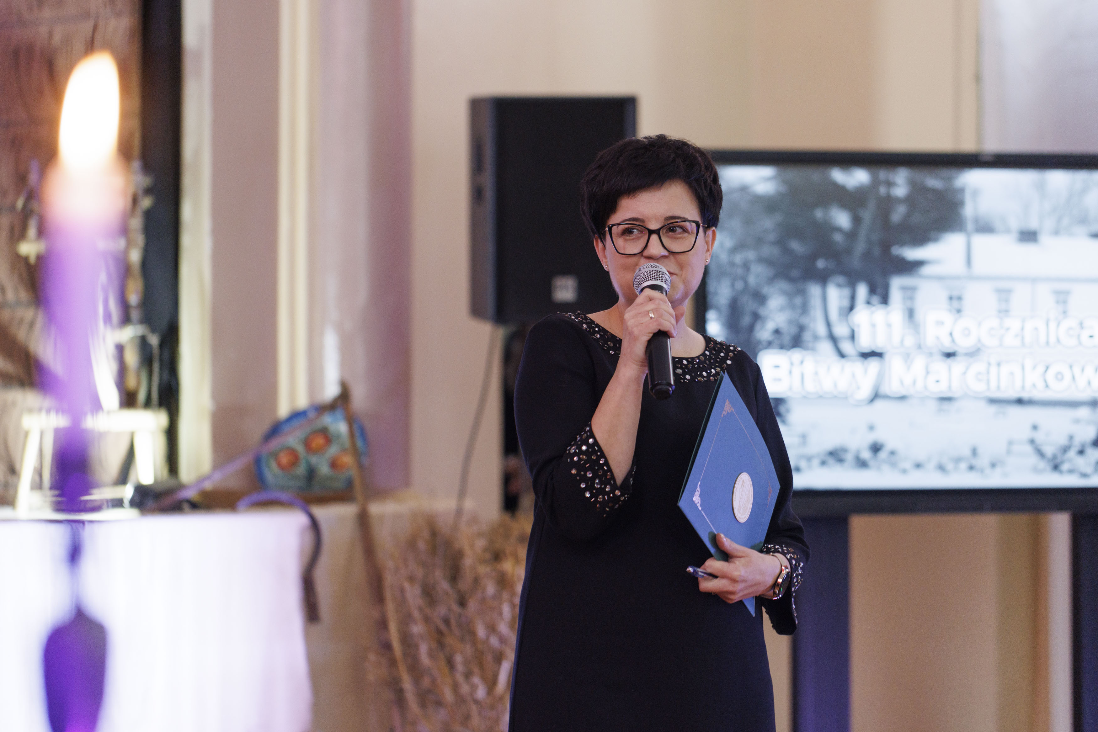 Na zdjęciu I wicewojewoda Elżbieta Achinger wręczająca odznaczenie. W tle inni uczestnicy.